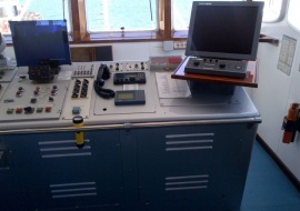 It's a beauty and fascinating to see...It's in perfect condition. Anchor Handling Tug Supply Vessel, blt 1975, Norway, loa 63.6m, beam 13.3m, BP 100t, towing winch, m/e 2x4000bhp ttl, pitch propellers, speed 11